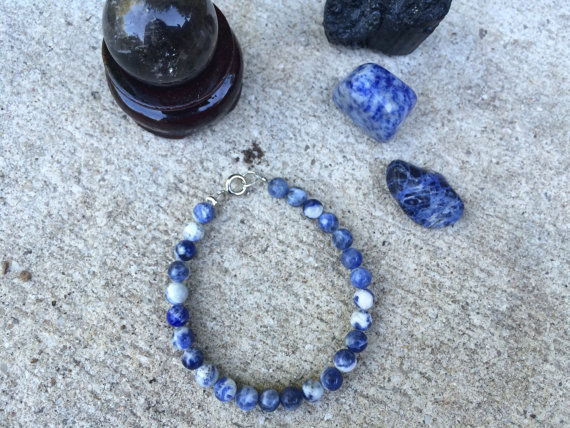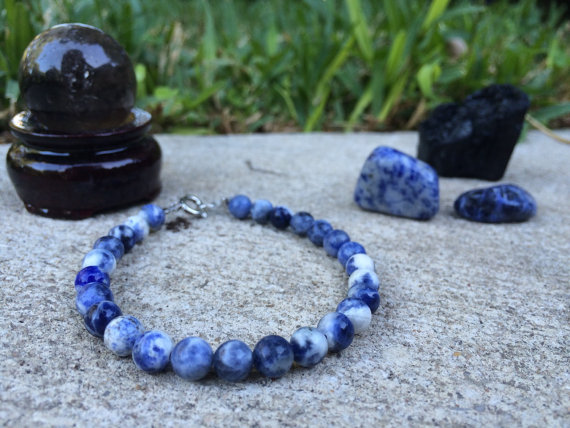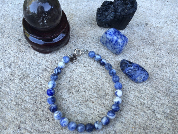 Sodalite is a grounding tool for use as you channel inspirational, spiritual, and/or metaphysical writings. It helps you keep your focus on your third eye center, which allows you to activate the 6 "clairs"- clairvoyance, clairaudience, claircognizance, clairsentience, clairolfaction, and clairgustation. This dark blue stone is a perfect tool for meditation, as it helps calm incessant internal chatter. Sodalite is a good study aid, especially when you are learning something new or unfamiliar. This stone also helps you maintain your focus on something important when your thoughts are scattered. Its calming effect helps you sort out your thoughts. It is a good stone to help you cancel out angry, vindictive or negative thoughts. Sodalite balances rampant emotions. This is a perfect stone for calming and releasing anger and frustration. Use this stone to help quell emotional outbursts brought on by PMS, menopause, or any other hormone-related upsets. This stone helps you acknowledge and accept hormone-related realizations as accurate, but it also helps you find a way to deal with and express them in a way other people can handle.