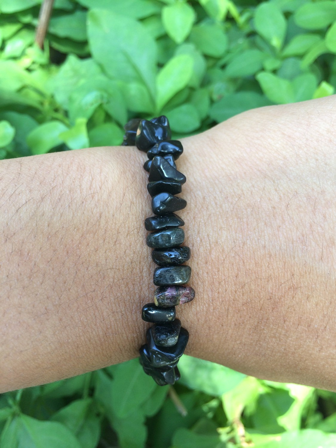 Lava Rock, Black Obsidian and Tourmaline bracelet